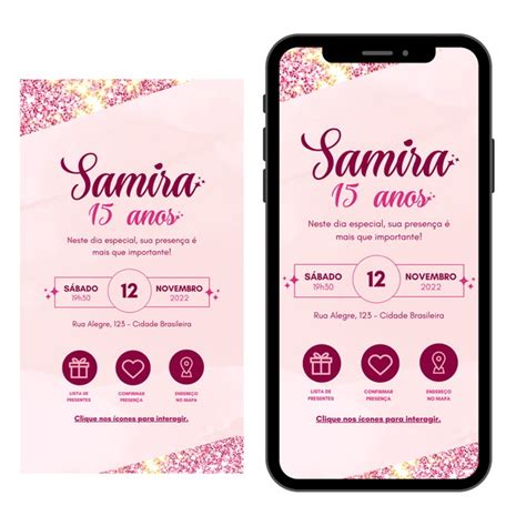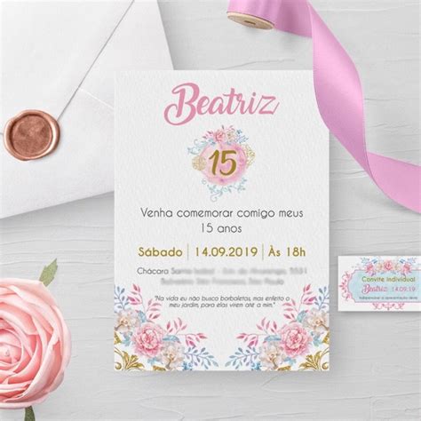 Personalize o convite do seu jeito com nosso editor online Nosso convite digital Convite aniversário 15 anos Floral é totalmente personalizável. Você pode alterar o texto, a fonte, as cores e até mesmo adicionar fotos.