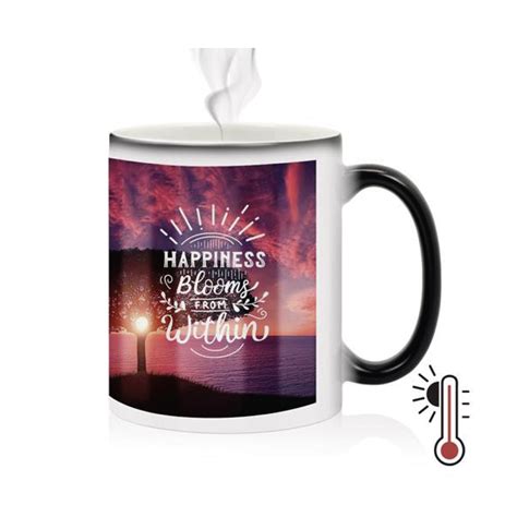 A caneca mágica fica toda preta quando não está sendo usada (fria) e revela a imagem estampada após colocar qualquer líquido quente. Pode ser personalizada à gosto do cliente (fotos, frases, signo, profissões, times, etc.)