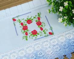 Toalha Lavabo bordada em fita de Cetim no Elo7 | Companhia da Arte...