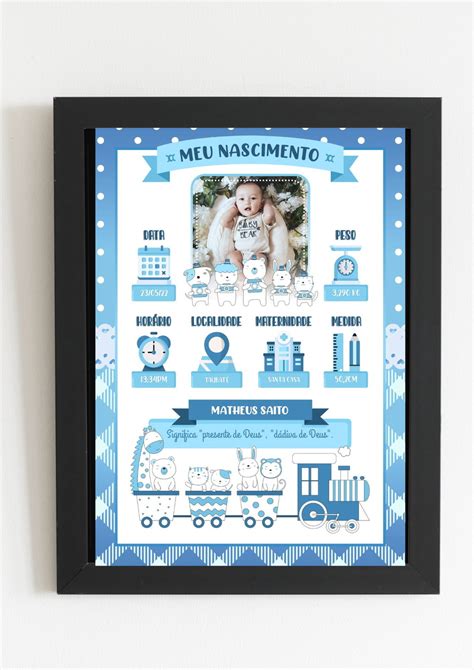 Um quadro de nascimento tradicionalmente apresenta informações importantes sobre o recém-nascido, como seu nome completo , data de nascimento , hora de nascimento , peso e altura.